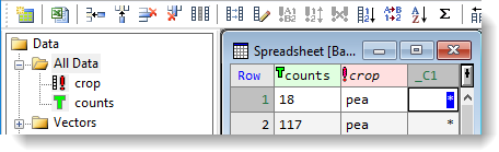 Use icons for types Select this to include icons in the column names to distinguish between data types (variate, text or factor). A factor is indicated by a red exclamation mark  at the start of the column name. A text is indicated by a green  at the start of the column name.