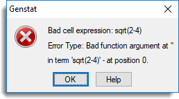 =sqrt(2-4) (This contains an error, giving the error dialogs):