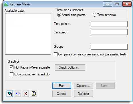 Stats | Survival Analysis | Kaplan-Meier. - Fill in the fields as required then click Run.