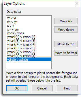 Move a data set up to plot it nearer the foreground or down to plot it nearer the background. Each data set will overlay those below it in the list.