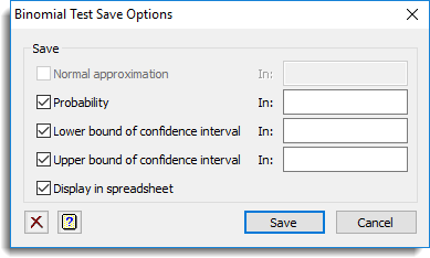 Use this window to save results from one- and two-sample binomial tests in Genstat data structures.