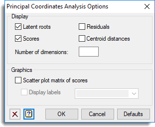 Use this to select the output to be generated by a principal coordinates analysis and options used in the analysis.