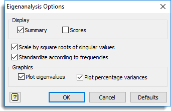 - Eigenanalysis Store options dialog.