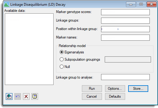 Stats | QTLs (linkage/Association) | Genotypic Analysis | Linkage Disequilibrium (LD) Decay. - Fill in the fields as required then click Run.