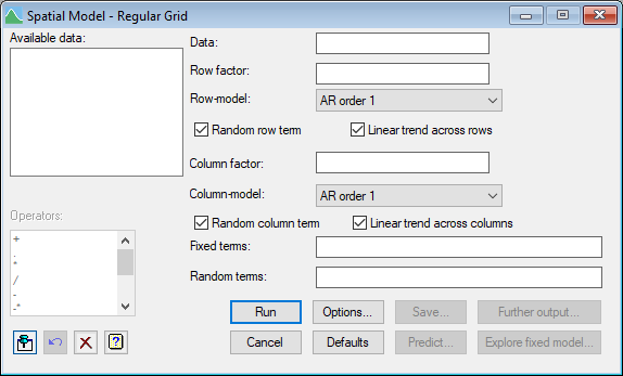 Select menu: Stats | Mixed Models (REML) | Spatial Models | Regular Grid