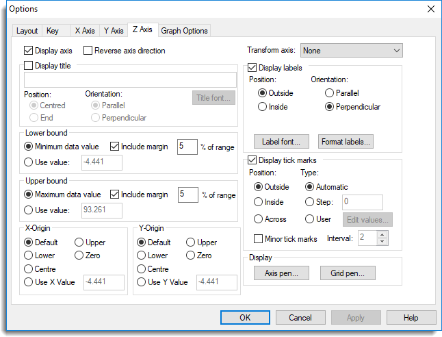 - To alter the settings for the Z-axis, double-click your graph then click the Z Axis tab.